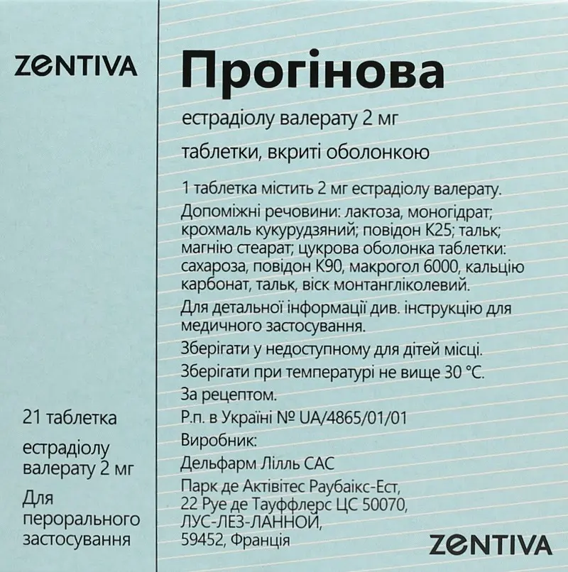 Прогинова таблетки покрытые оболочкой 2 мг №21, Delpharm Lille
