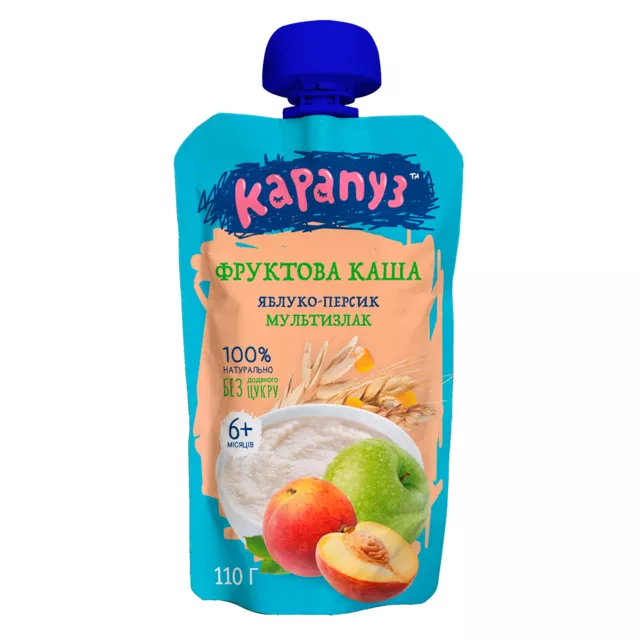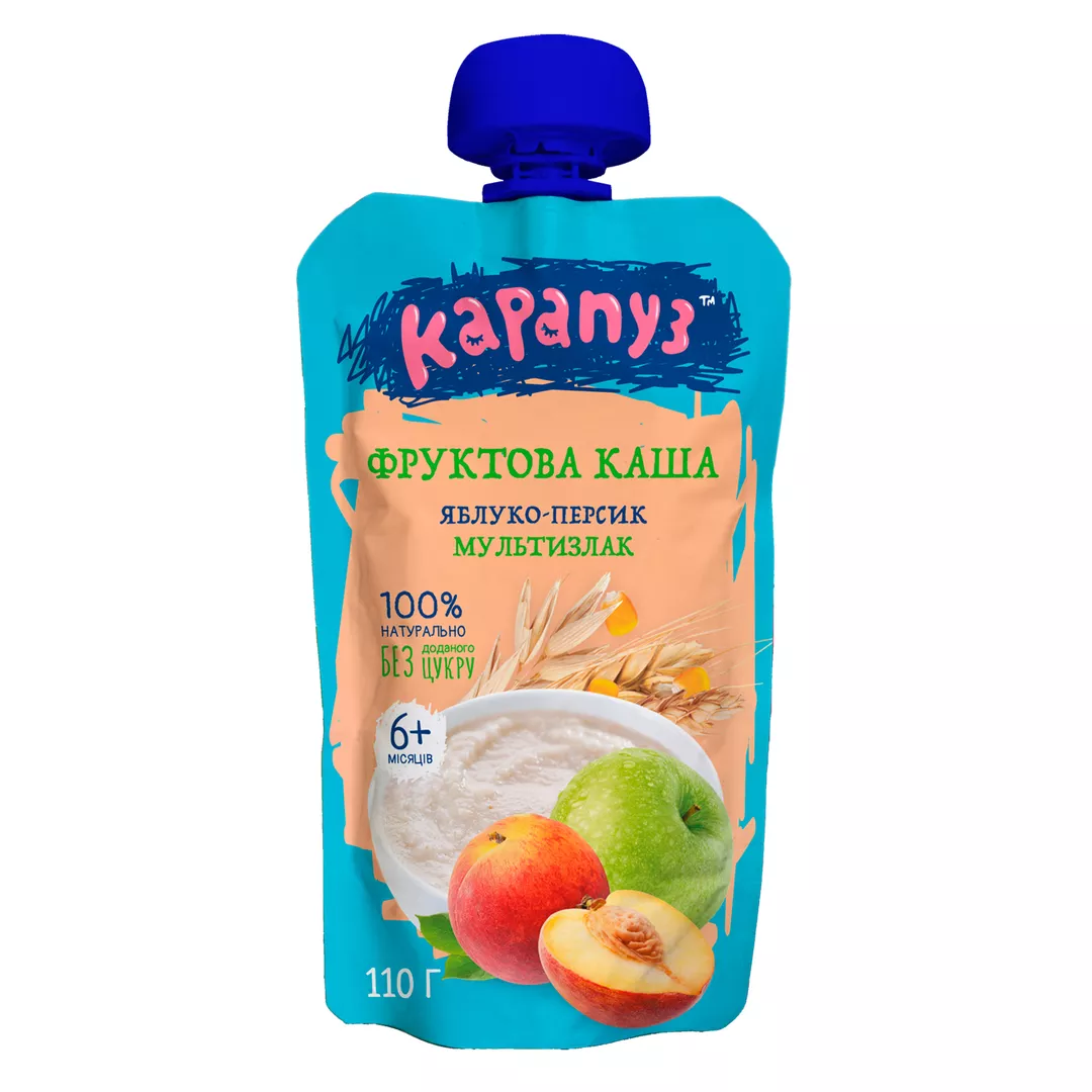 Фруктова каша Карапуз Яблуко-Персик Мультизлак - смачне фруктове перекушування в зручному упаковуванні.