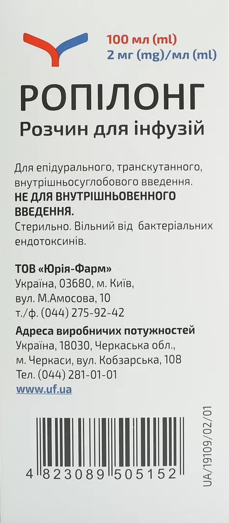 Ропилонг раствор для инфузий 2 мг/мл флакон 100 мл, Юрия-Фарм