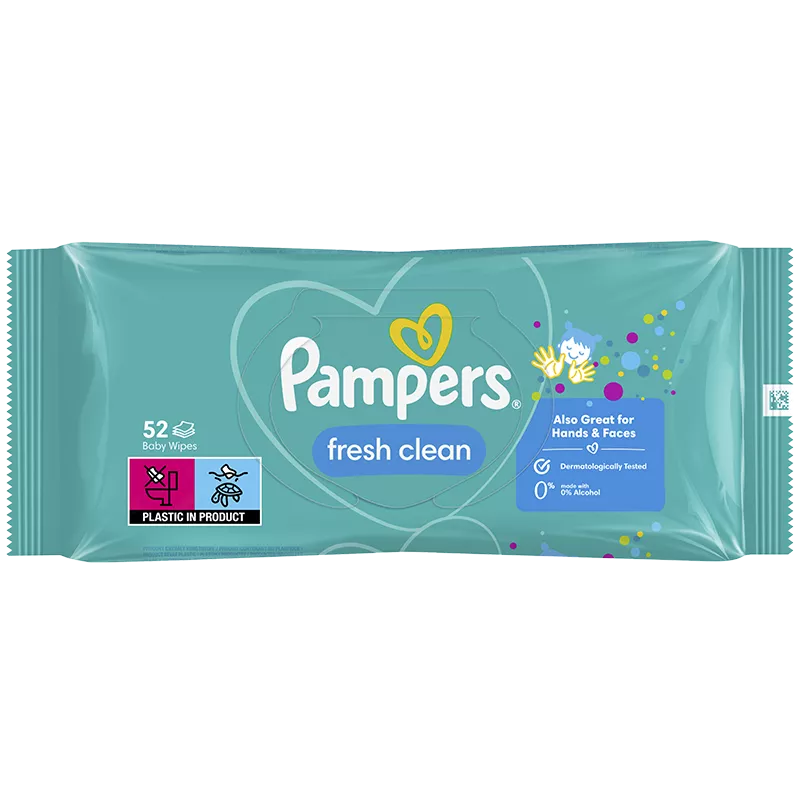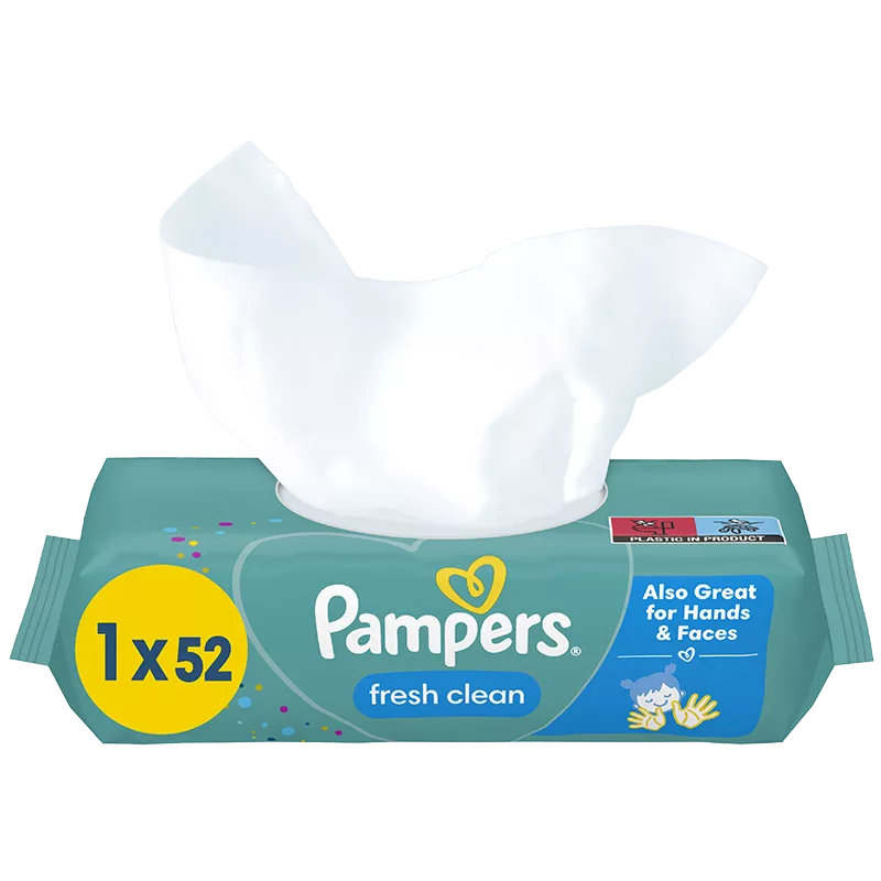 Шкіра вашого малюка дуже ніжна й потребує найбільш делікатного очищення. Серветки Pampers Фреш Клін забезпечують дбайливе очищення завдяки м’якій і щільній тканині з приємним свіжим ароматом.
