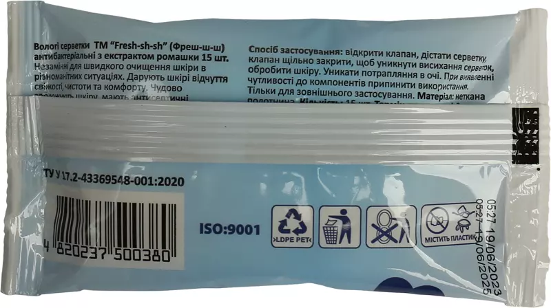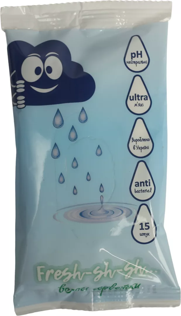 Салфетки влажные Фреш (Fresh-sh-sh) антибактериальные 15 шт, Фибратекс Плюс ООО (Украина, Ровно)