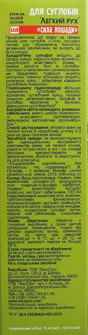 Сила лошади крем-гель для суставов 75 мл, ЛекоПро