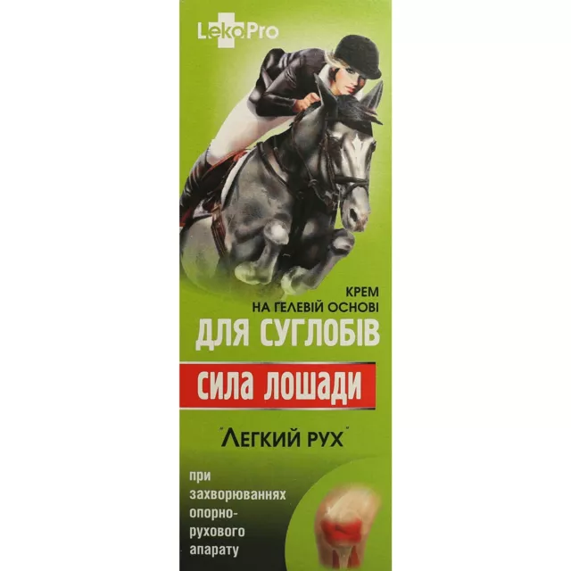 Крем-гель "Сила Лошади" для суглобів містить хондроїтин і глюкозамін, а також інші біологічно активні компоненти (муміє, рутин, рослинні екстракти), відомі своєю здатністю зміцнювати кісткову і хрящову тканину, сприяти фіксації кальцію та активізувати регенерацію клітин. Науково доведено, що будова кісток в ногах людини і коня подібно, і тому крем-гель для суглобів "Сила Лошади" підходить кожному, хто прагне захистити своє тіло від пошкодження хрящів і сухожиль.