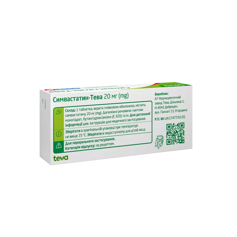 Лікарський засіб Симвастатин-Тева показаний для підвищення рівня ХС-ЛПВЩ у пацієнтів з помірно підвищеним рівнем загального холестерину (5,5-8,0 ммоль/л).