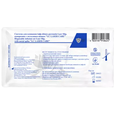 2. Система для вливання інфузійних розчинів Luer Slip, одноразова з металевим шипом "LC LASER CARE".