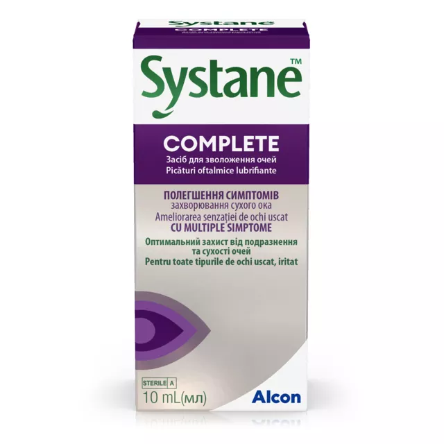 Засіб для зволоження очей SYSTANE™ COMPLETE призначений для тимчасового полегшення таких симптомів, як печіння, подразнення та інших симптомів сухості очей.