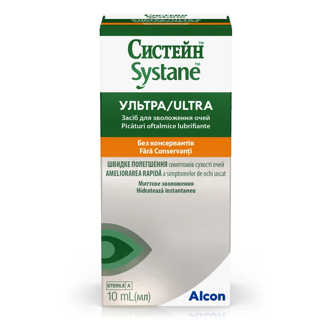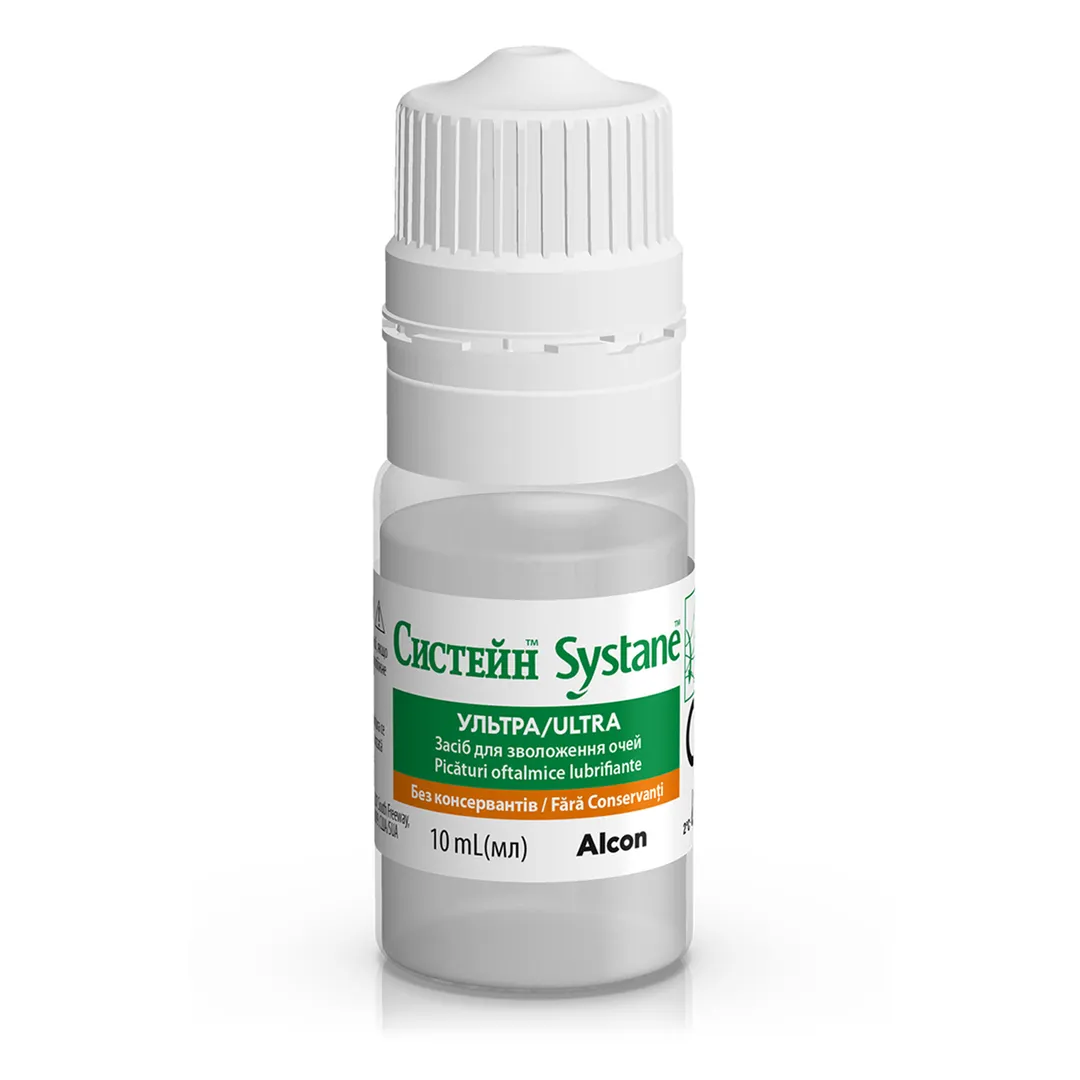 Засіб для зволоження очей СИСТЕЙН™УЛЬТРА без консервантів призначений для застосування при захворюванні сухого ока для тимчасового полегшення таких симптомів, як печіння та подразнення, викликаних сухістю ока.