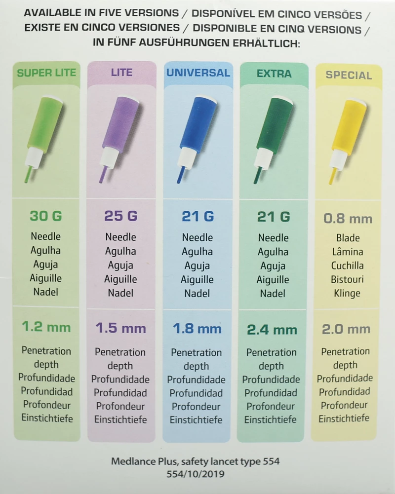 Ланцет Medlance Plus Universal - це автоматичне пристосування з декількома видами голок, які підходять для різного типу і структури шкіри. У ланцета ультратонка голка і спрямована лінія проколу, що значно знижує больовий поріг. Це простий, ефективний і безпечний механічний пристрій одноразового користування, що не вимагає спеціальних навичок в застосуванні.
