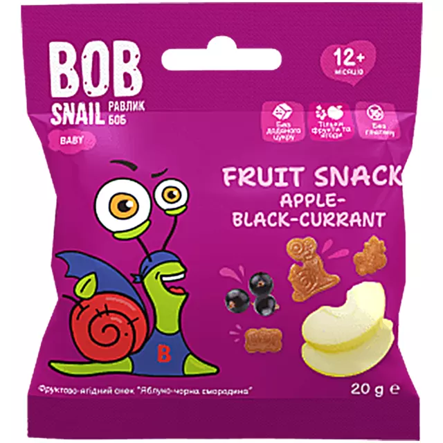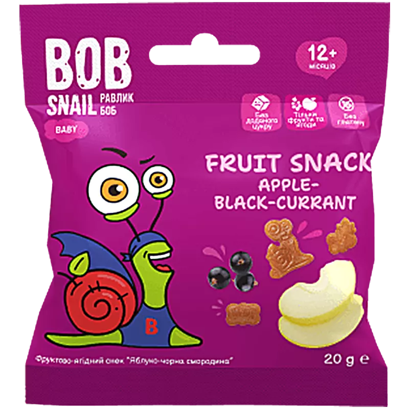 Фруктовий снек для дитячого харчування з 12 місяців «Яблуко-Чорна смородина» Bob Snail (Равлик Боб)