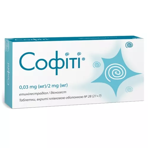 Софіті® – це комбінований пероральний контрацептив (КПК) з етинілестрадіолом та дієногестом.