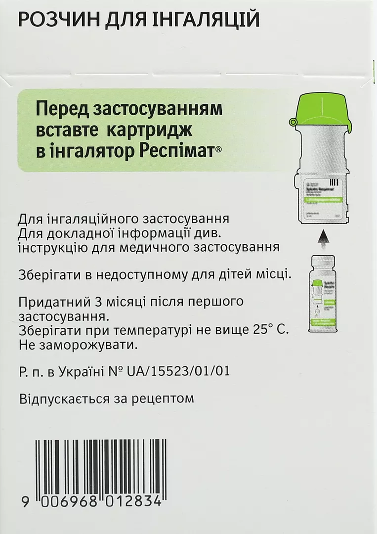 По 4 мл у картриджі (60 інгаляцій); по 1 картриджу в комплекті з 1 інгалятором РЕСПІМАТ у картонній коробці.