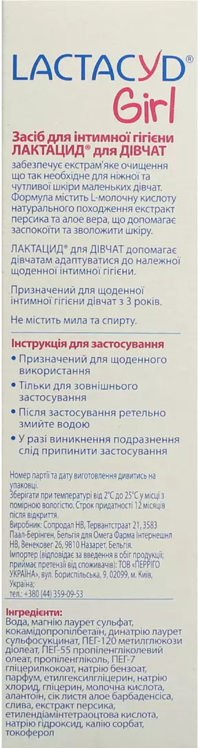 Предназначен для ежедневной интимной гигиены девочек от 3 лет.