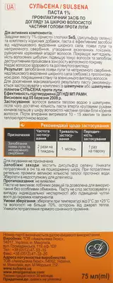 Для досягнення максимального результату пасту рекомендується застосовувати у комплексі з шампунем СУЛЬСЕНА проти лупи.