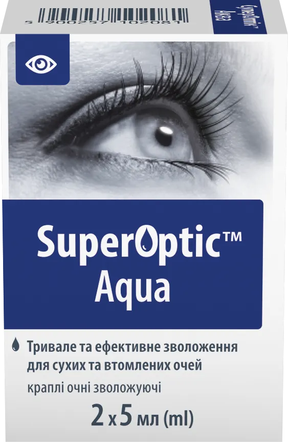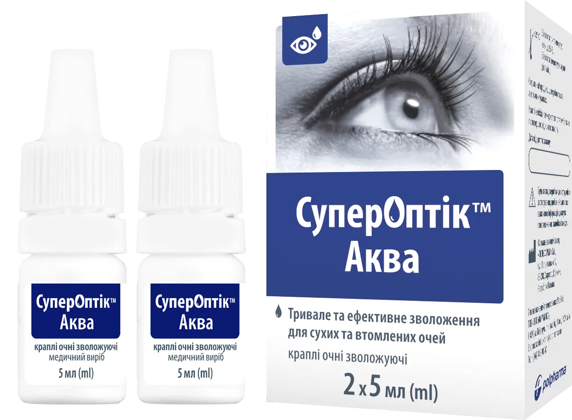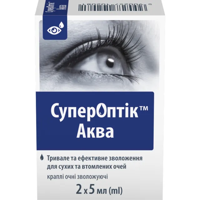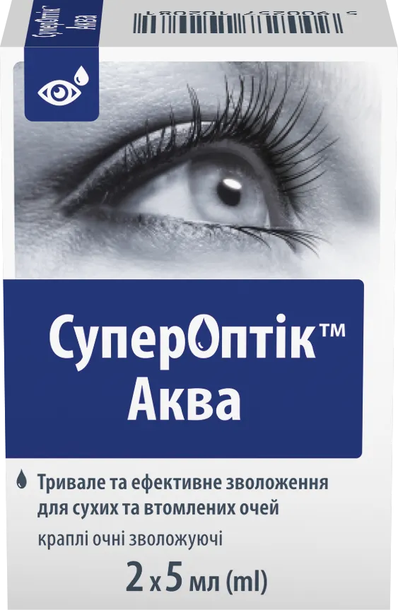 СуперОптіктм Аква – зволожуючі очні краплі, які забезпечують ефективне і тривале зволоження очей.