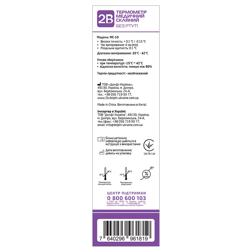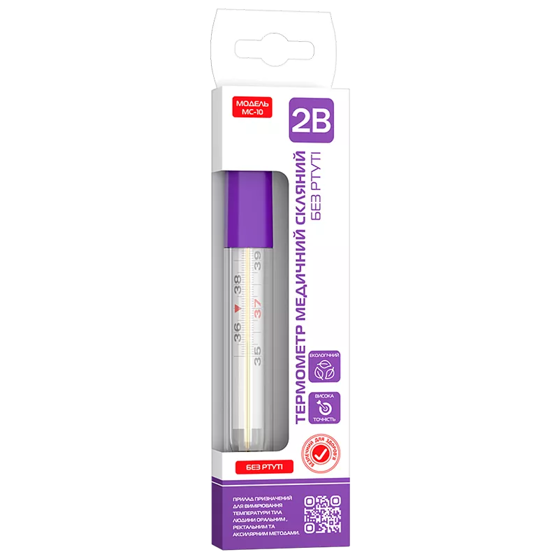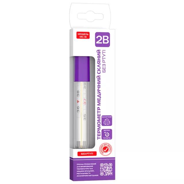 Термометр медичний скляний без ртуті, МС-10, 2В