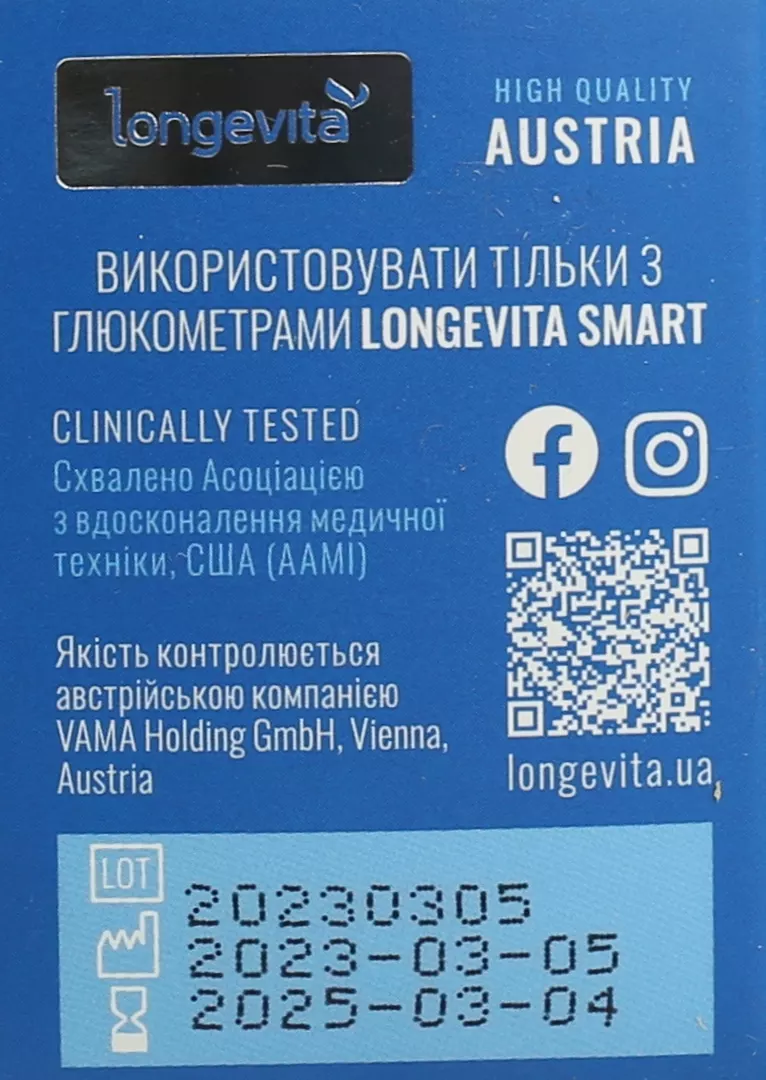 Підходять для використання виключно з глюкометром Longevita Smart