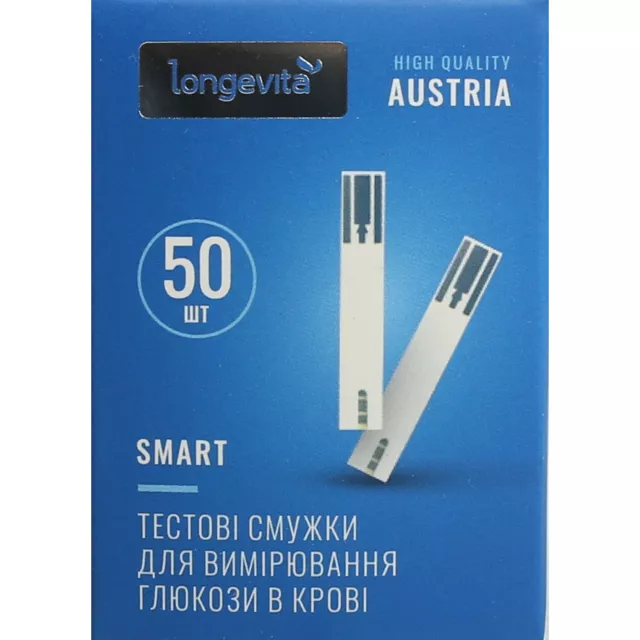 Тест-смужки Longevita Smart для глюкометра, 50 штук