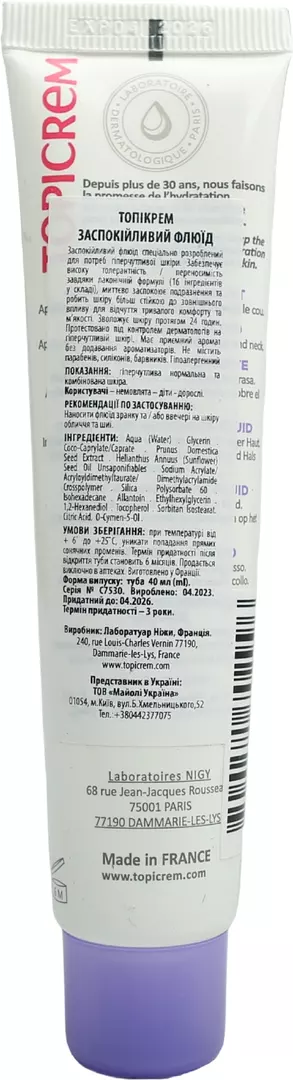 Топикрем (Topicrem) Калм+ флюид для лица ультра увлажняющий успокаивающий 40 мл, Lab. NIGY