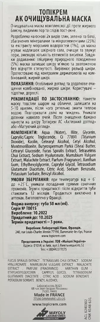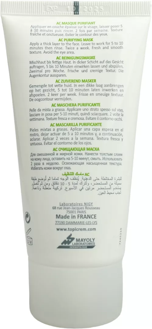 Топикрем (Topicrem) АС очищающая маска для жирной и комбинированной кожи 50 мл, Lab. NIGY