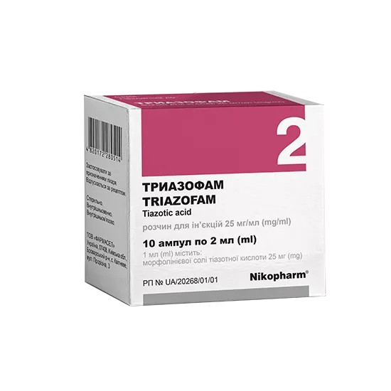 Триазофам раствор для инъекций 25 мг/мл ампулы 2 мл №10, Фармасел