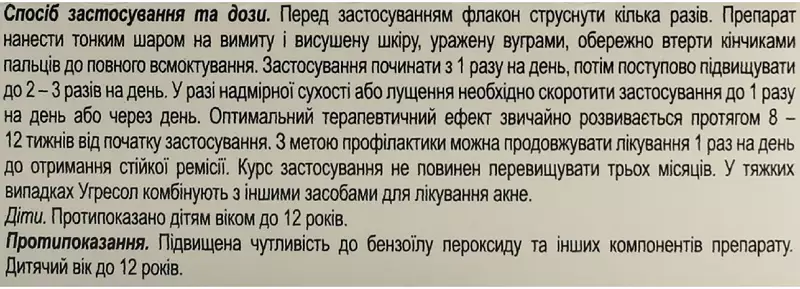 У тяжких випадках Угресол комбінують з іншими засобами для лікування акне.