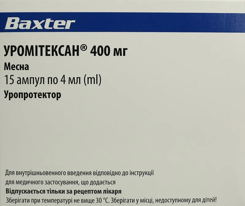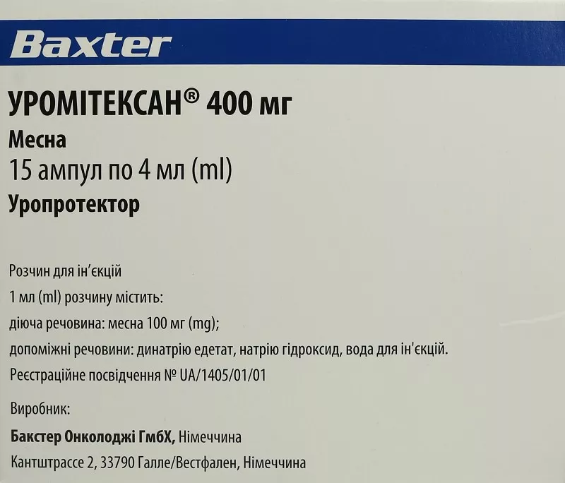 Уромитексан раствор для инъекций 400 мг ампулы 4 мл №15, Baxter Oncology