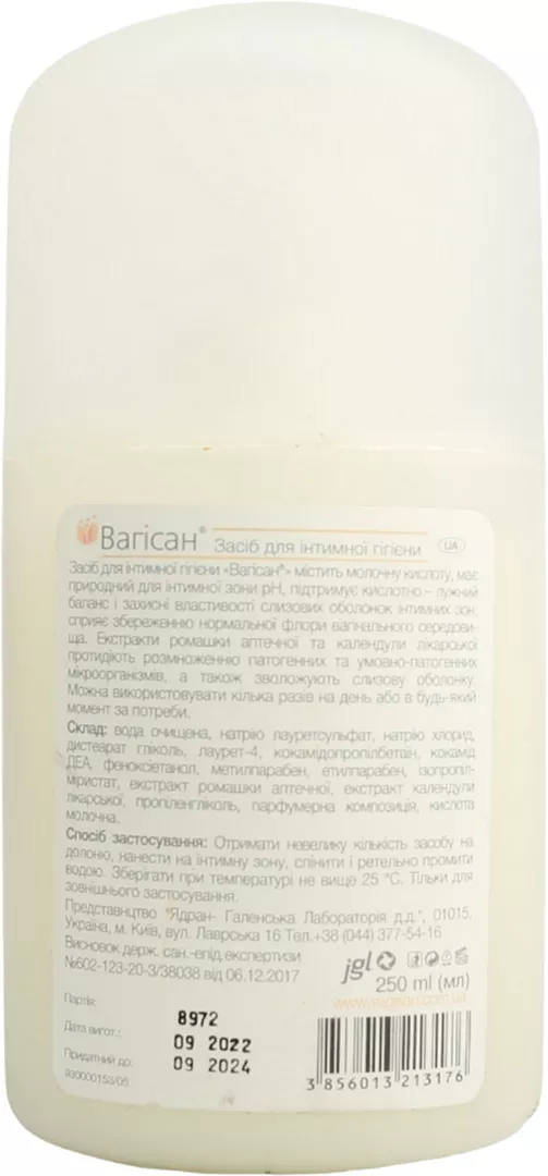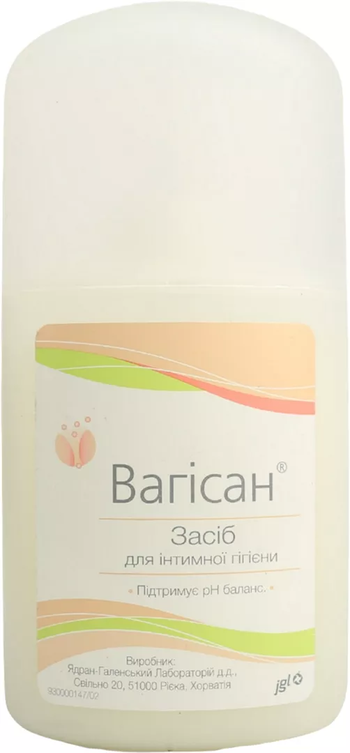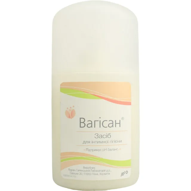 Засіб для інтимної гігієни Вагісан містить молочну кислоту, має pH 4-6, природний для інтимної гігієни. Підтримує кислотно-лужний баланс і захисні властивості слизових оболонок інтимних зон. Сприяє збереженню нормальної флори вагінального середовища.