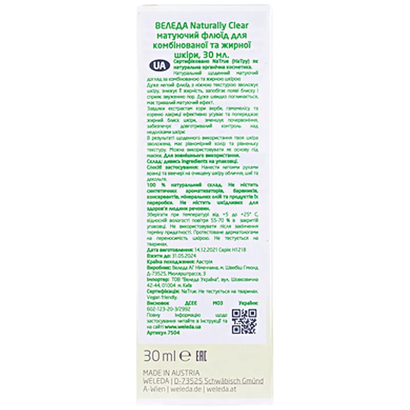 Инструкция для Веледа (Weleda) Нечуралли Клиа матирующий флюид для жирной и комбинированной кожи 30 мл Распечатать