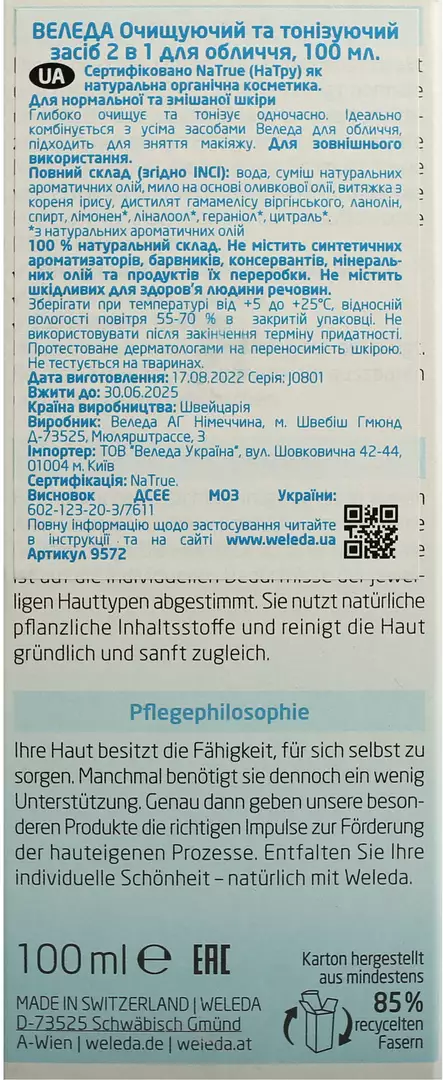 Инструкция для Веледа (Weleda) Средство 2 в 1 очищающее тонизирующее для лица 100 мл Распечатать