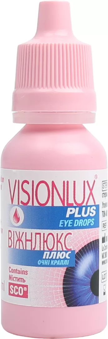 Капли ВИЖНЛЮКС ПЛЮС законсервированы с помощью специальной системы консервации под названием SCO® (Стабилизированный комплексный оксихлор), который сохраняет раствор стерильным во флаконе. Под действием света SCO® разлагается на компоненты, которые содержатся в слезах человека, такие как хлорид натрия, кислород и вода, благодаря чему он хорошо переносится.