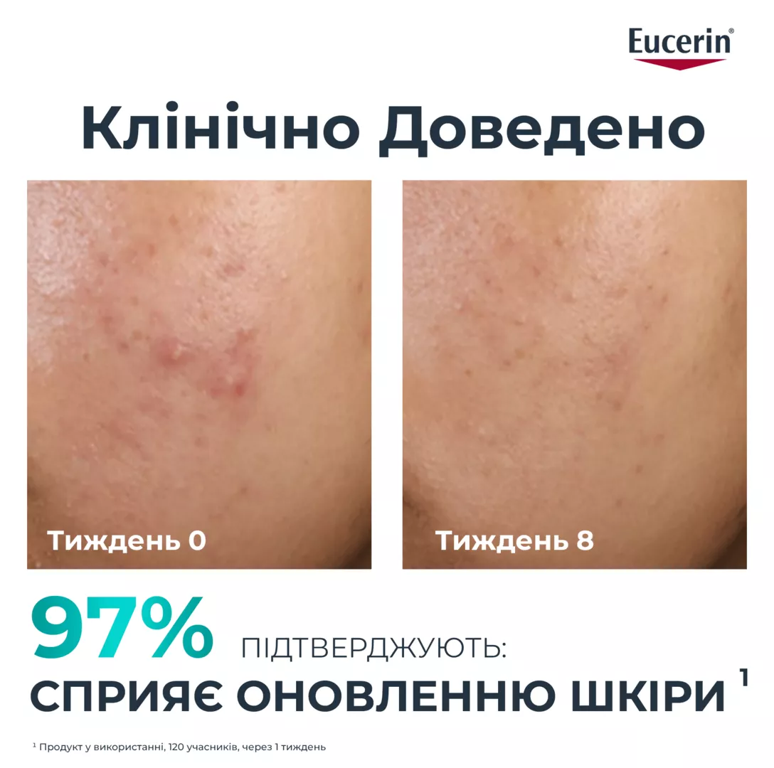 Рекомендації до застосування: Використовувати один раз на день. Бажано ввечері. Нанесіть невелику кількість (розміром з горошину) на ретельно очищене обличчя. М’яко помасажуйте шкіру. Після цього нанесіть відповідний засіб для догляду, наприклад Eucerin DermoPure матуючий флюїд для проблемної шкіри. Уникайте контакту з очима.