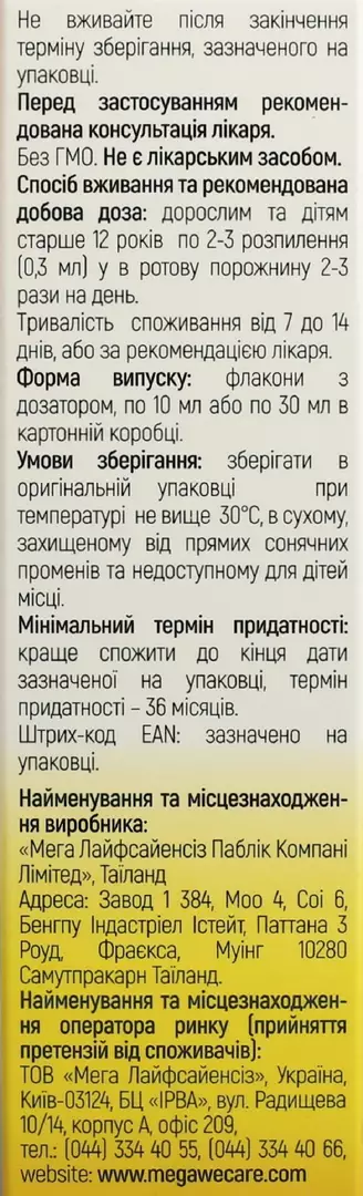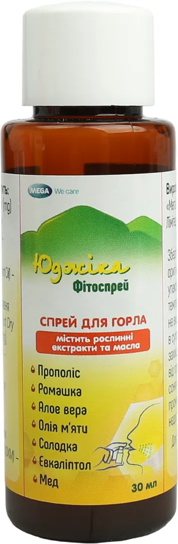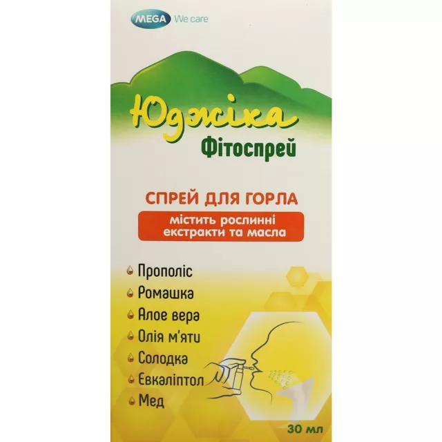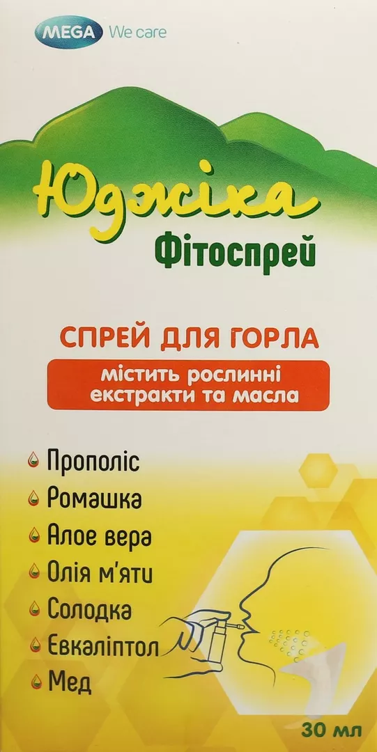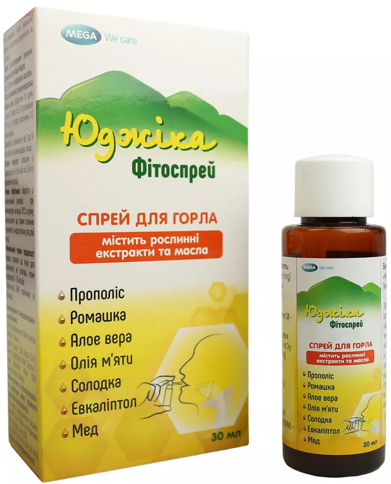 Юджика Фитоспрей спрей для горла с растительными экстрактами и маслами флакон 30 мл, Mega Lifesciences